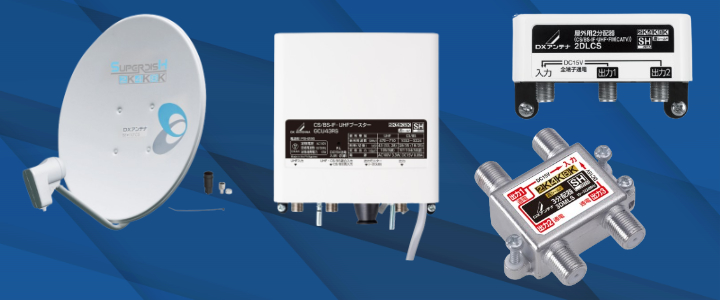 テレビ用ブースターは弱電界対策や集合住宅設備で必須となる機器です。DXアンテナ製ブースターは低雑音設計と安定した増幅性能に定評があり、市場でも回転が早い主力商材です。